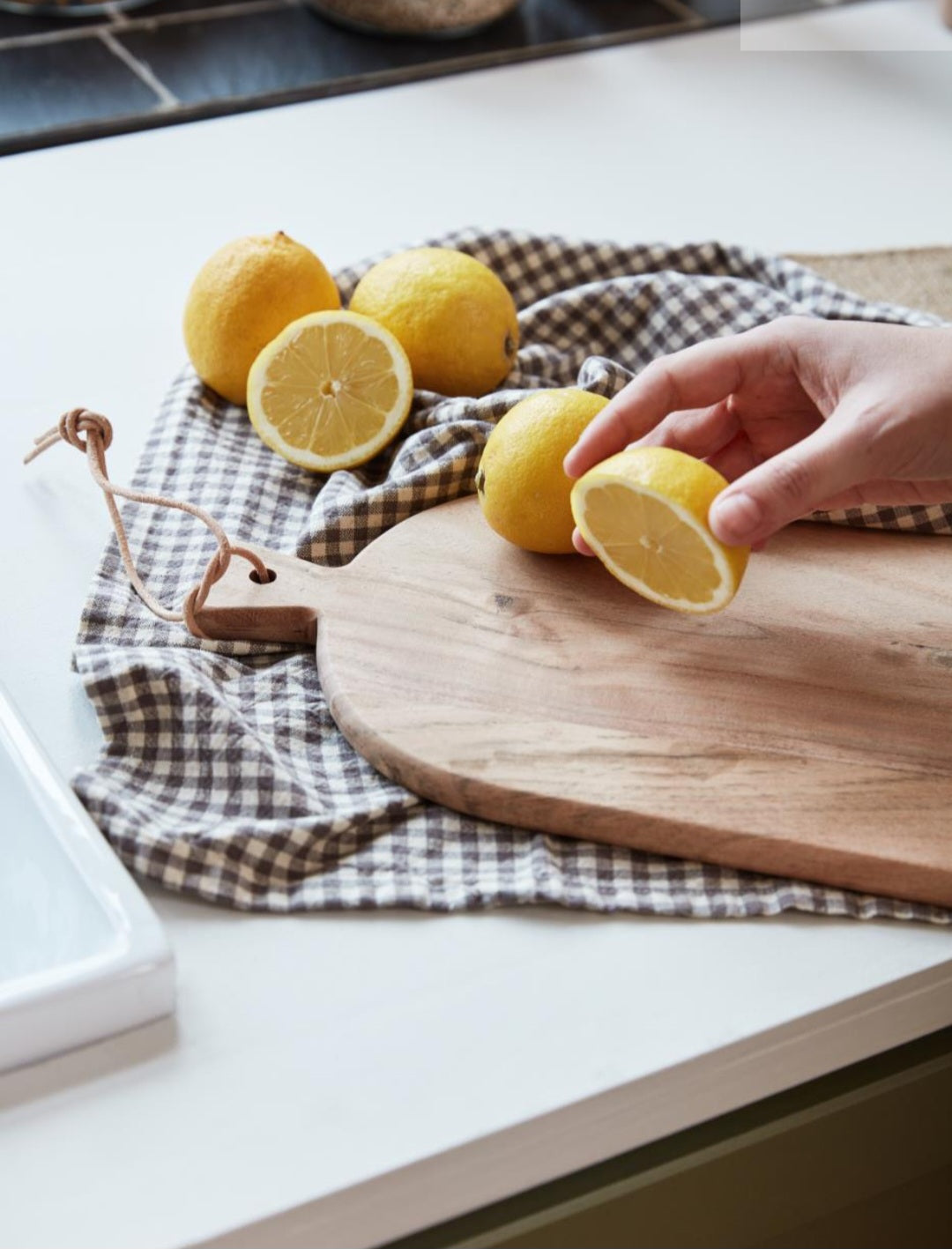 Crafted from smooth acacia wood and finished with rounded corners and a leather string. This looks great when in use and styled simply on your kitchen counter.
