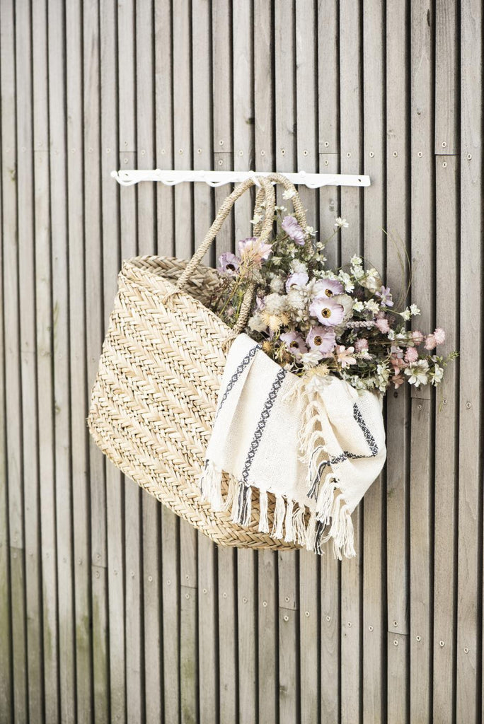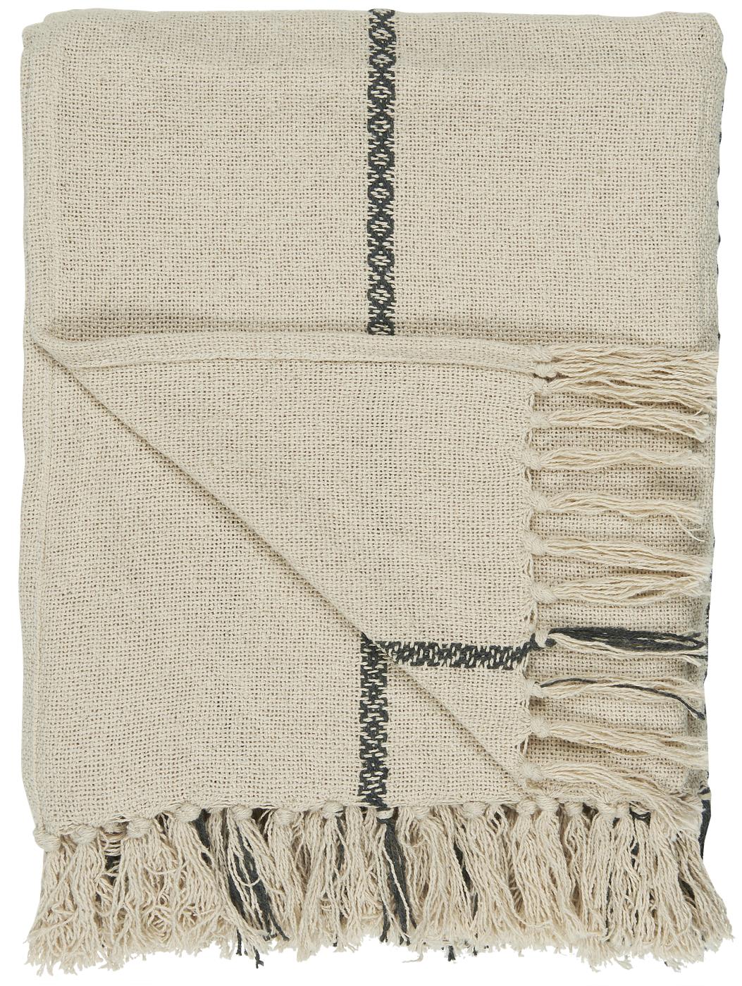 100% cotton throw. A beautiful fresh cream and black striped, perfect to throw over you on the cooler evenings or to style a couch or bed.