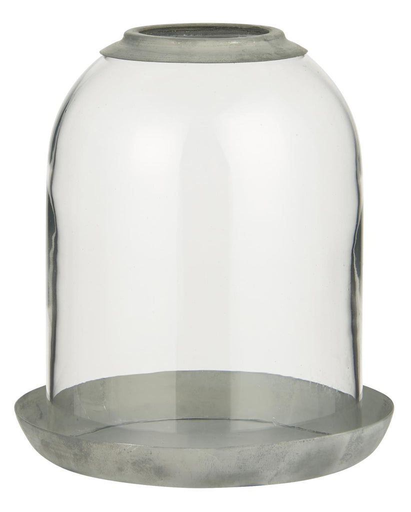 This rustic glass cover comes complete with a metal tray. it can be used to display dried flowers, candles or maybe a little trinket. The glass has a hole in the top which will allow a candle to be lit or maybe even a small plant to grow.