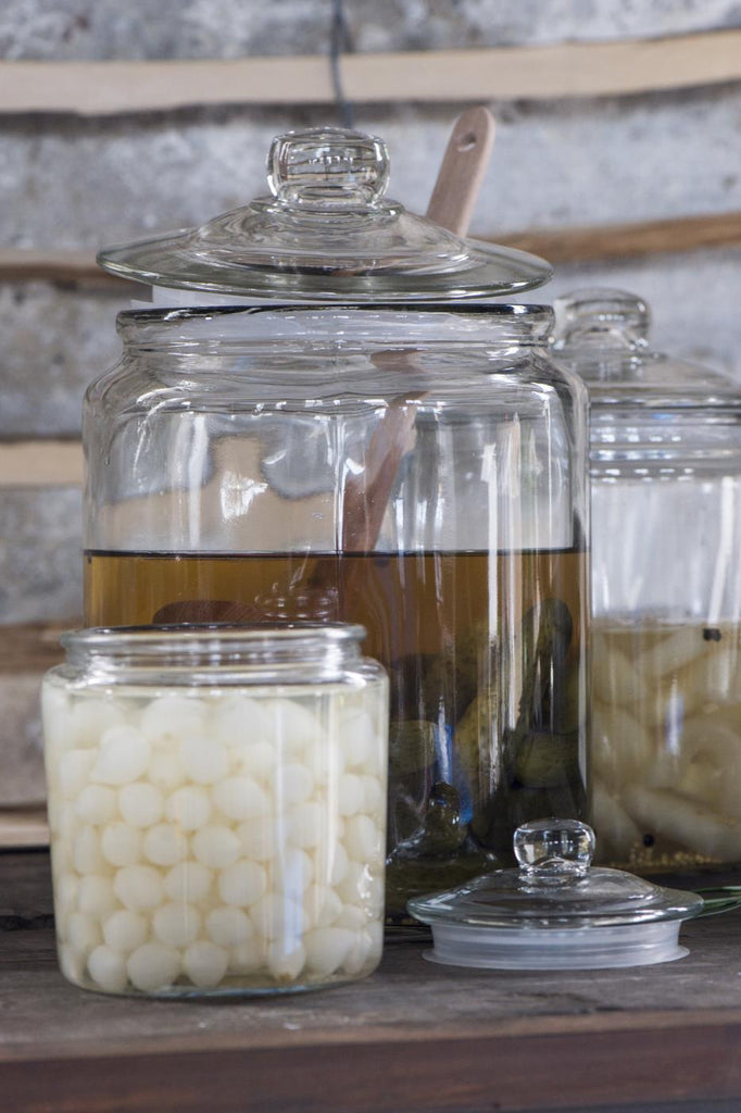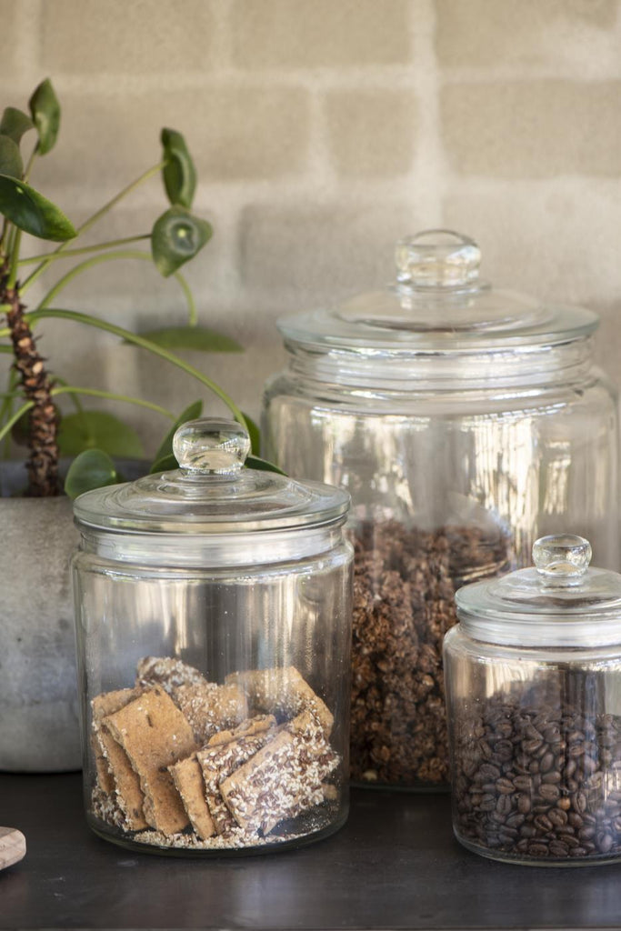 This glass jar is airtight allowing you to store food items such as flour, biscuits and sweets.