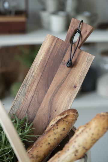 Made from Acacia wood with uneven edges