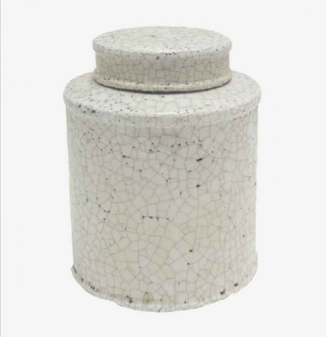 Style up your coffee table, shelf or console with our crackled ceramic jar.